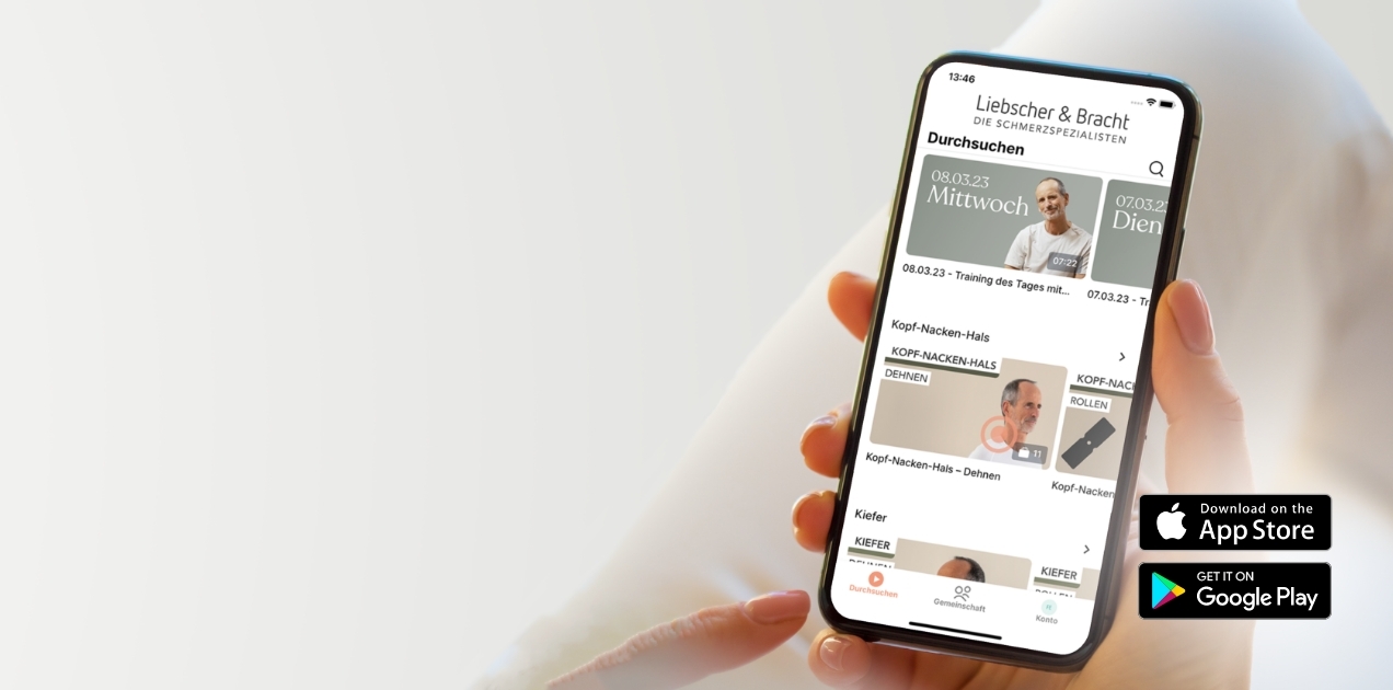 Die Liebscher & Bracht App wurde mit über 35 Jahren Schmerztherapie-Erfahrung speziell entwickelt, um dir alles an die Hand zu geben, womit du selbst für deine Schmerzfreiheit und Beweglichkeit sorgen kannst!